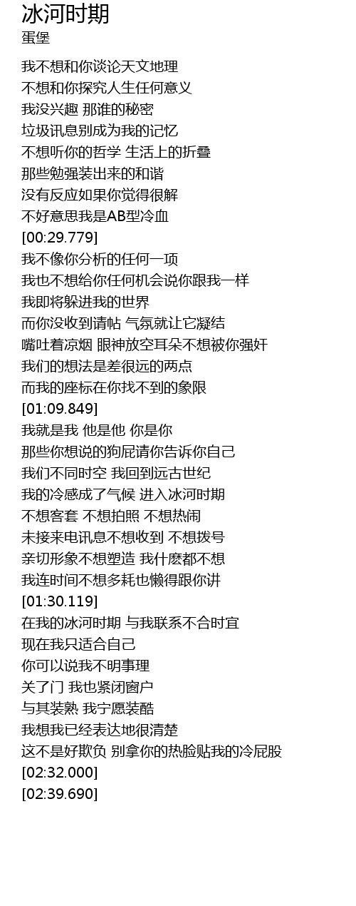 | [02:10.650] | 在我的冰河时期 与我联系不合时宜 |