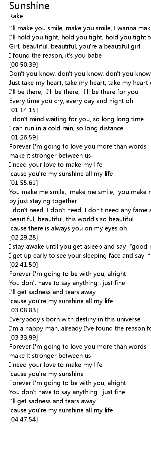 | [04:39.63] | ' cause you' re my sunshine all my life |