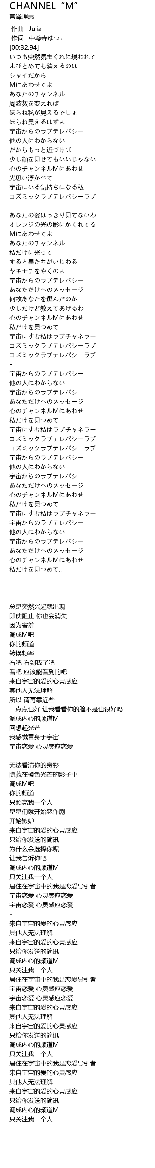 CHANNEL" M" Lyrics
