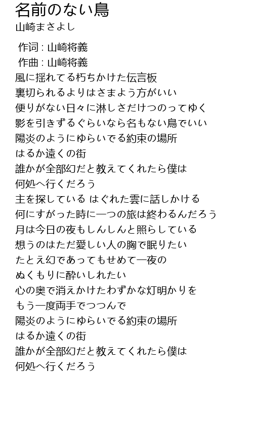 | [00:43.31] | 影を引きずるぐらいなら名もない鳥でいい |