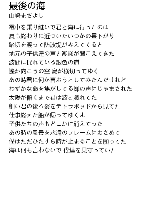 | 細い君の後ろ姿をテトラポッドから見てた | |