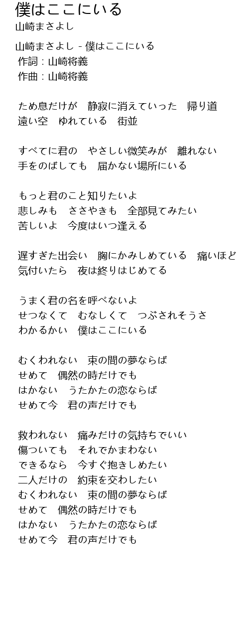 | 遅すぎた出会い 胸にかみしめている 痛いほど | |