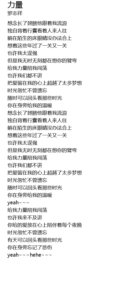 | [02:55.71] | gěi wǒ lì liàng péi wǒ chuǎng dàng |