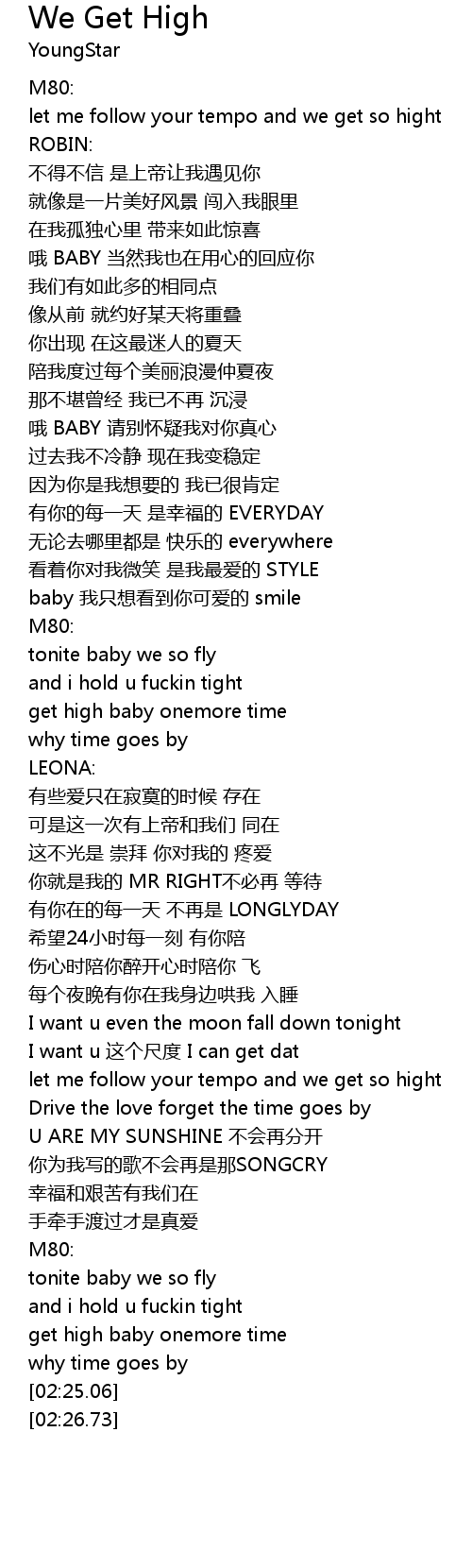 | [01:48.70] | let me follow your tempo and we get so hight |