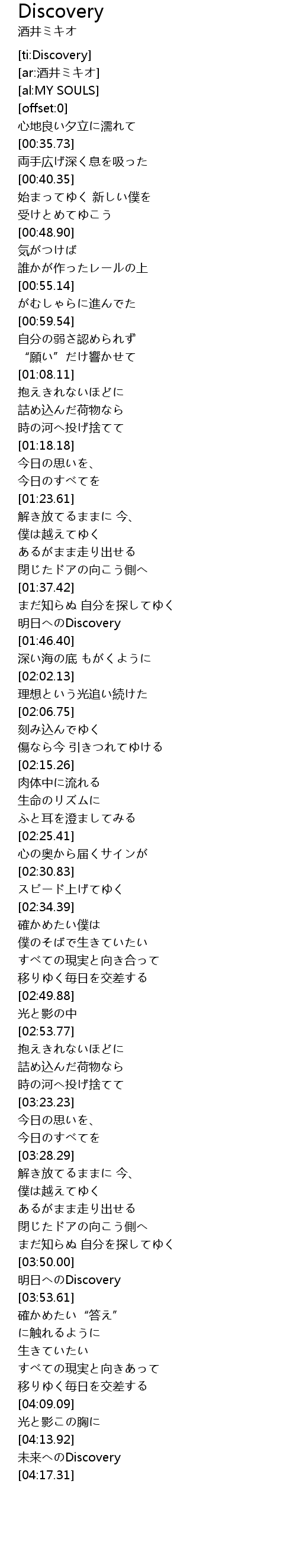 | [04:14.49] | 未来へのDiscovery |