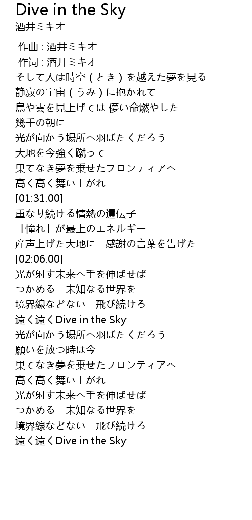 | [02:37.00] | yuǎn yuǎn Dive in the Sky |