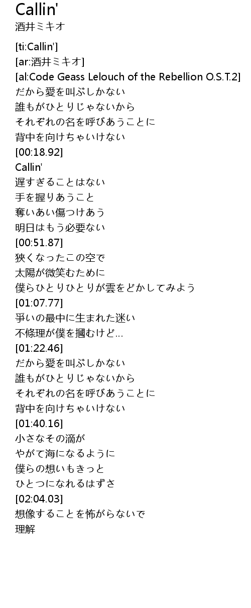 | [01:31.80] | それぞれの名を呼びあうことに |