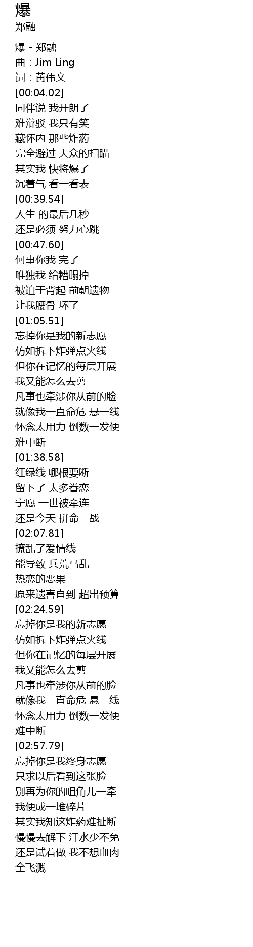 | [00:00.97] | 爆 - 郑融 |