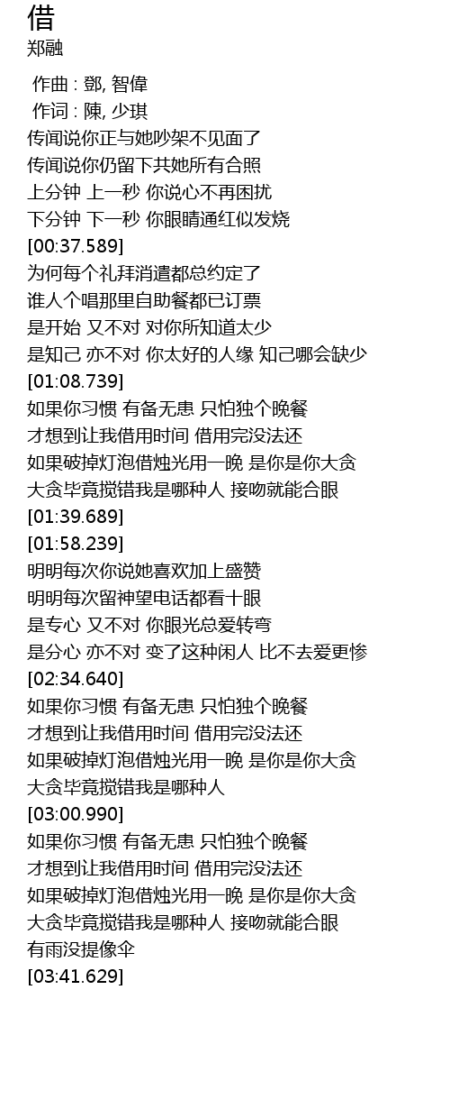 | [03:09.080] | 才想到让我借用时间 借用完没法还 |
