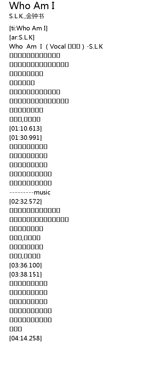 | [00:00.506] | Who Am I (Vocal 김종서)-S.L.K |