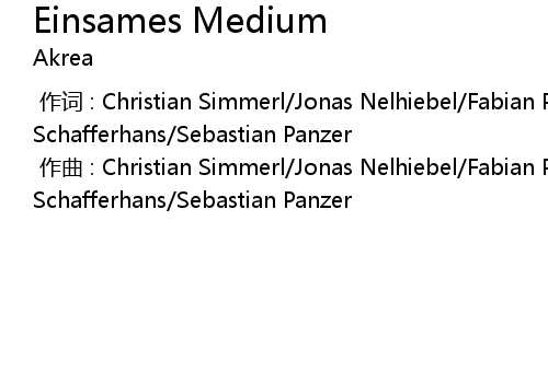 | [00:00.000] | zuo qu : Christian Simmerl Jonas Nelhiebel Fabian Panzer Stephan Schafferhans Sebastian Panzer |