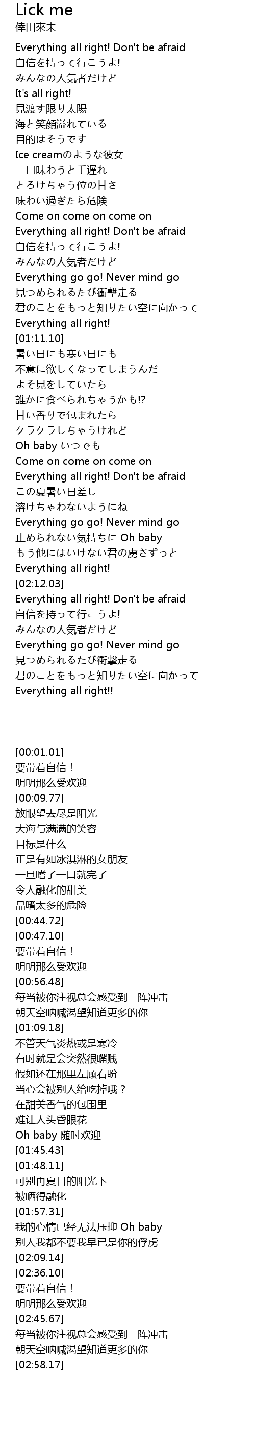 | [00:01.01] | Everything all right! Don' t be afraid |