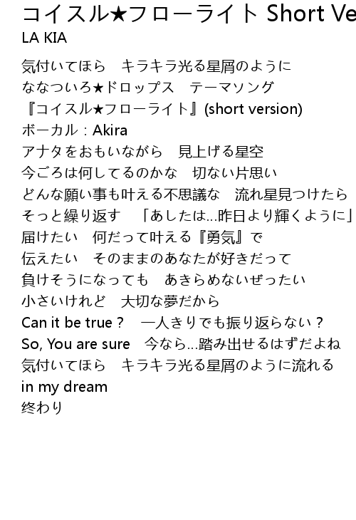 | [00:12.18] | 『コイスル★フローライト』(short version) |
