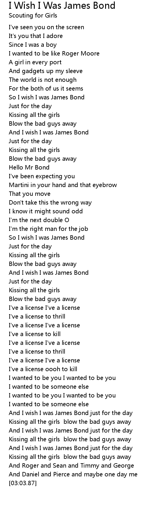 I Wish I Was James Bond Lyrics