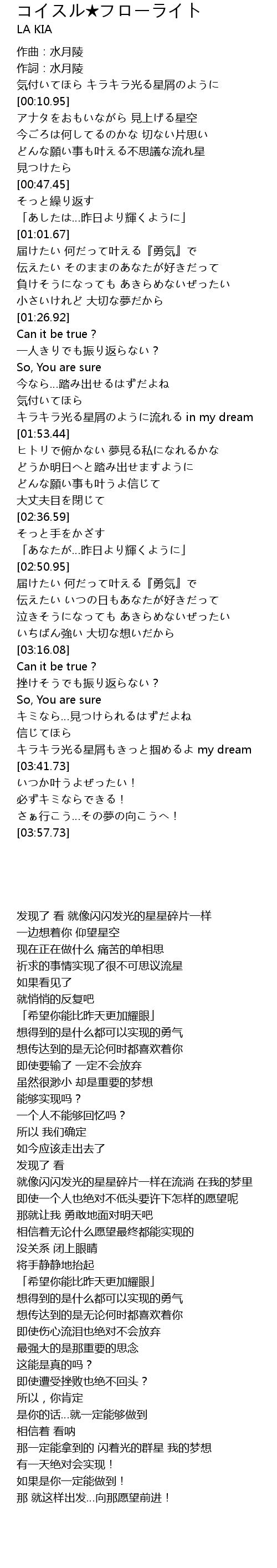 | [03:31.63] | キラキラ光る星屑もきっと掴めるよ my dream |