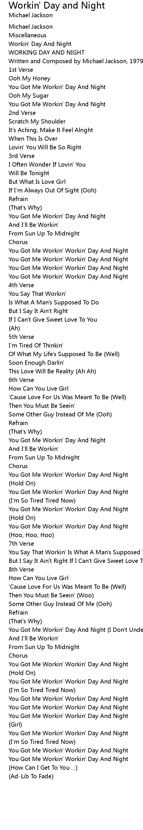 You Got Me Workin' Day And Night (I Don't Understand It) |