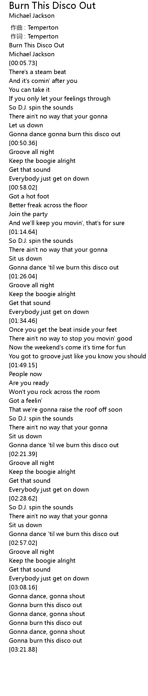 | [00:47.89] | Gonna dance gonna burn this disco out |