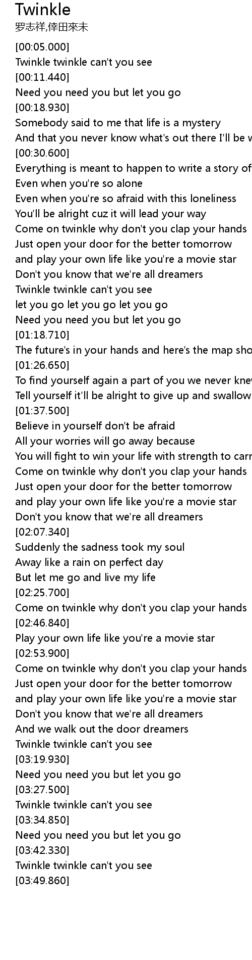 | [02:57.380] | Come on twinkle why don't you clap your hands |