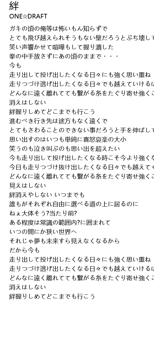 | 絆消えやしない いつまでも | |