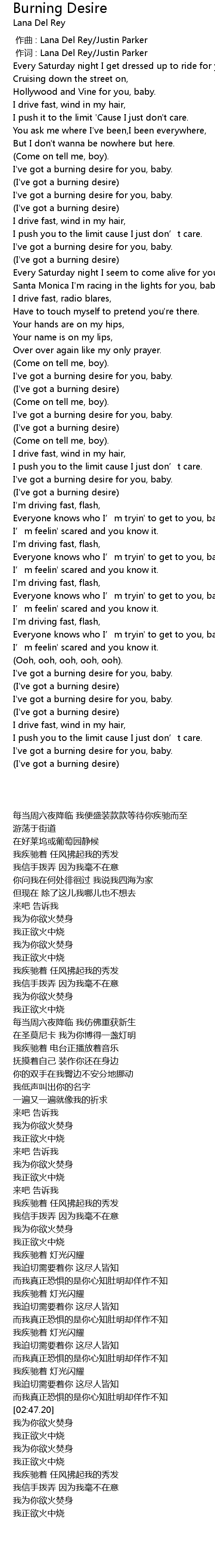 | [02:55.33] | I've got a burning desire for you, baby. |