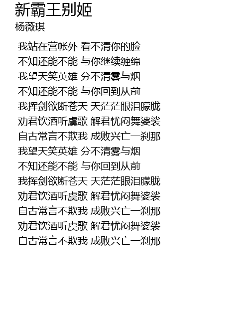| [00:42.48] | wo wang tian xiao ying xiong fen bu qing wu yu yan |