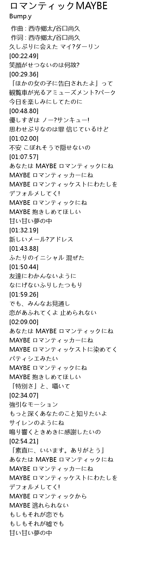 | [03:02.02] | MAYBE ロマンティッカーにね |