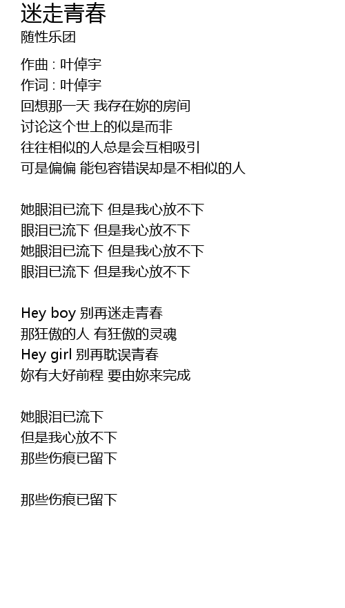 | Hey boy bié zài mí zǒu qīng chūn | |