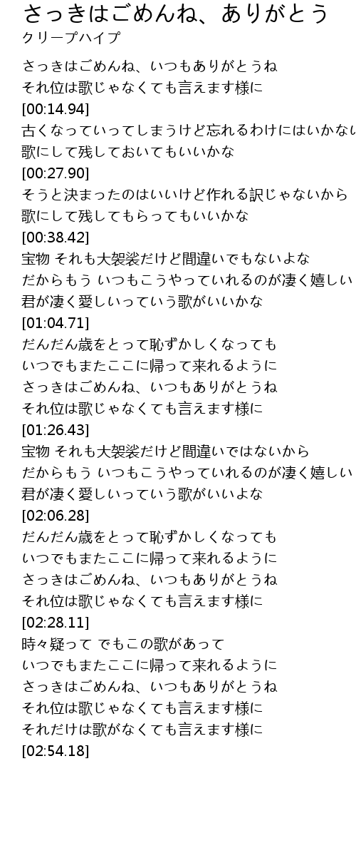 | [02:17.76] | さっきはごめんね、いつもありがとうね |
