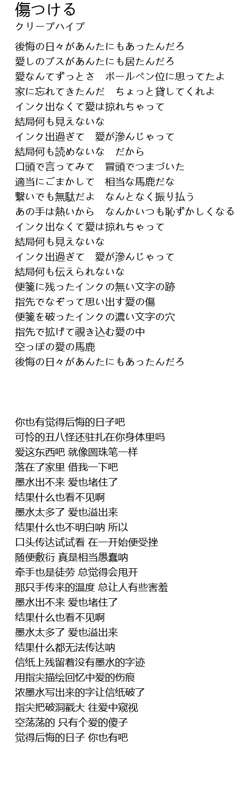 | [04:45.58] | 便箋を破ったインクの濃い文字の穴 |