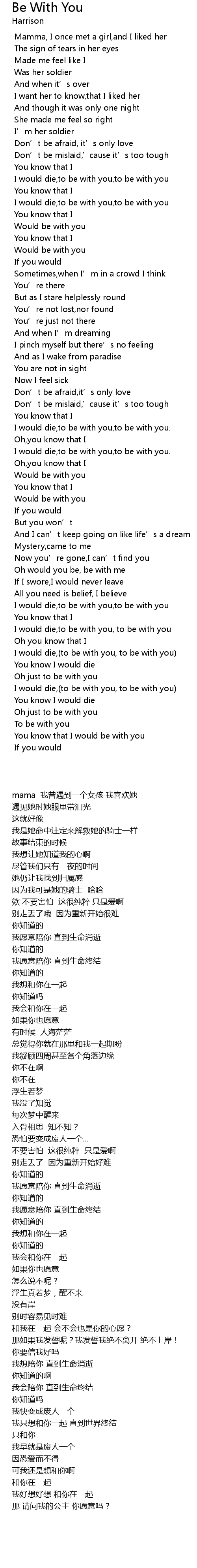 | [02:18.989] | I would die, to be with you, to be with you. |