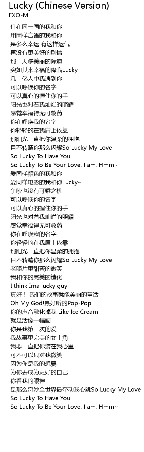 | [02:57.190] | shi na me qi miao quan shi jie zui qian dong wo xin tiao So Lucky My Love |