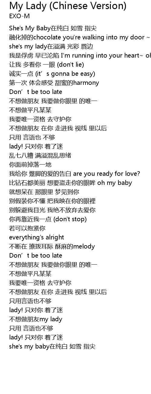| Song | My Lady (Chinese Version) |