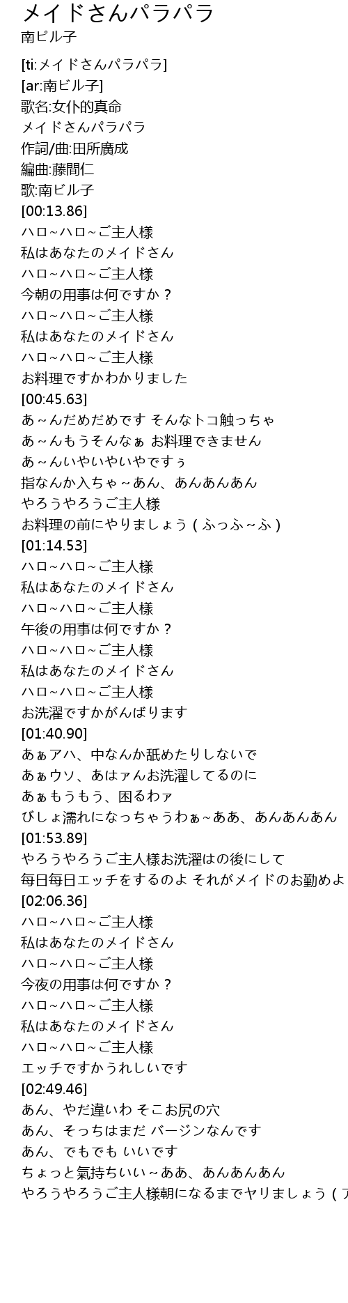 | [02:04.16] | 每日每日エッチをするのよ それがメイドのお勤めよ |