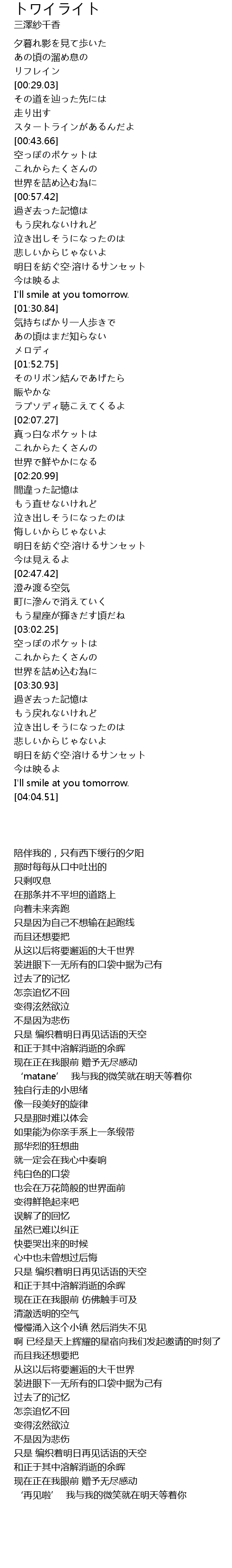 | [03:45.79] | 明日を紡ぐ空·溶けるサンセット |