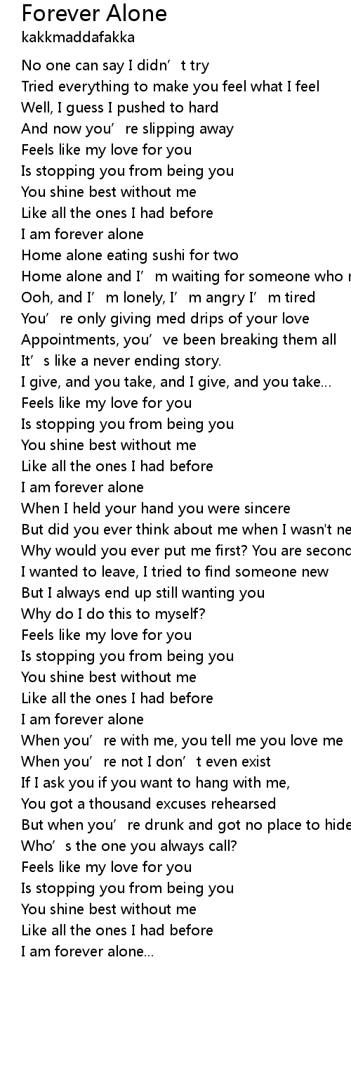| Ooh, and I’m lonely, I’m angry I’m tired | |