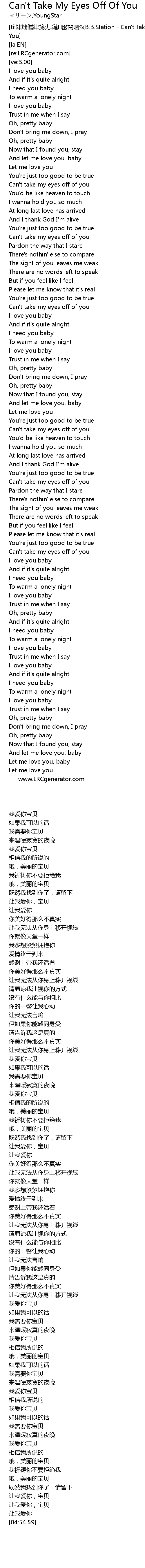| [00:51.09] | Can't take my eyes off of you |