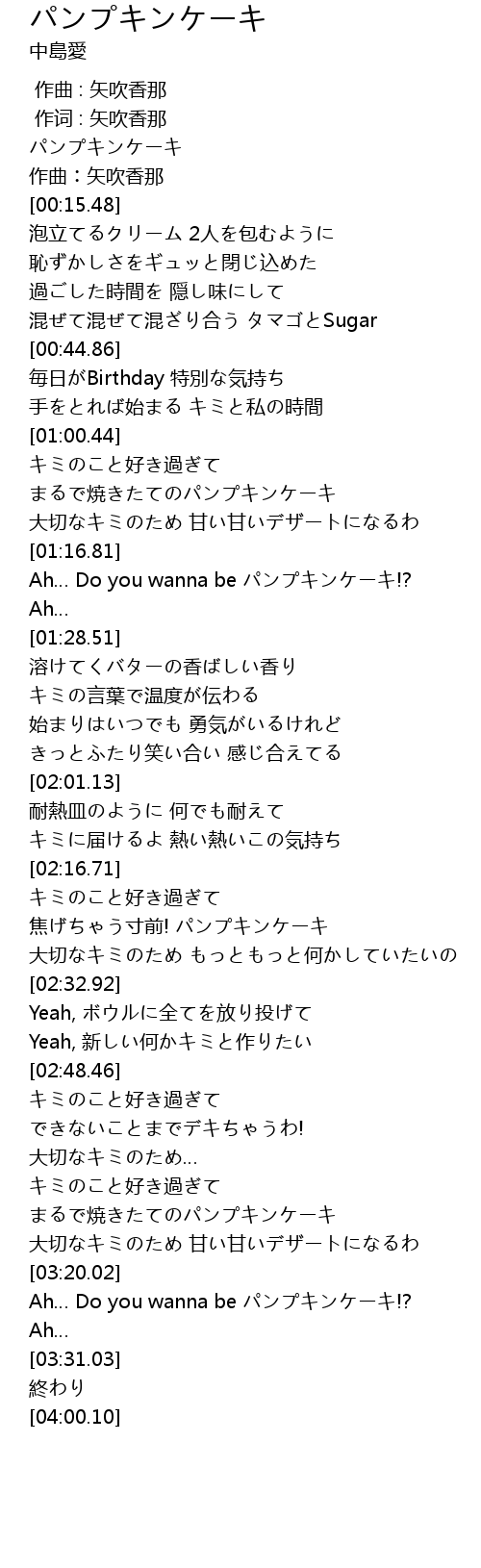 | [03:08.38] | まるで焼きたてのパンプキンケーキ |