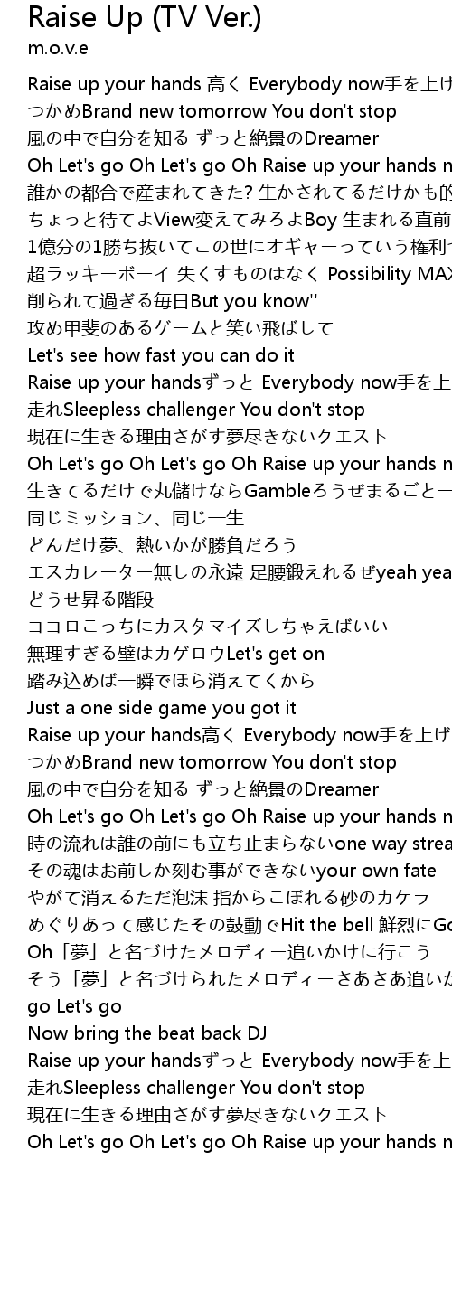 | Raise up your hands 高く Everybody now手を上げろさあ | |