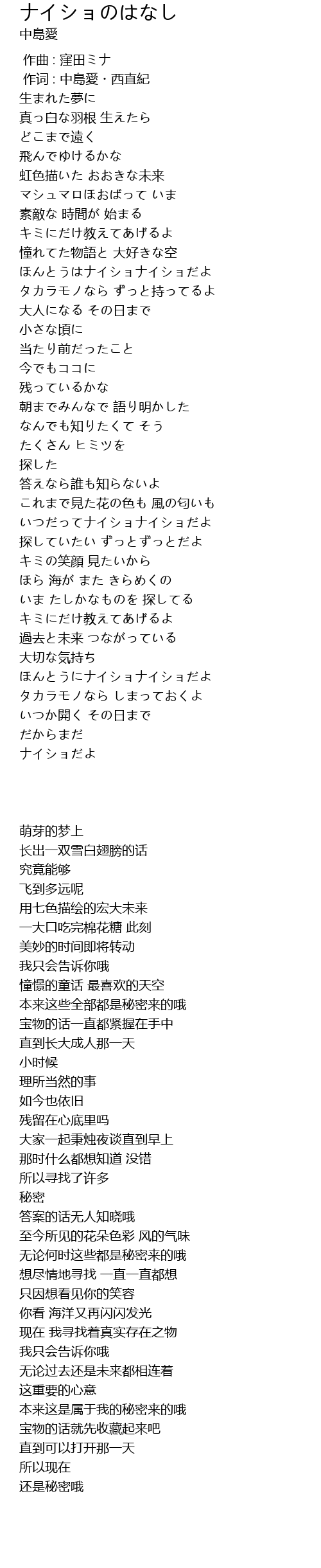 | [00:01.00] | 作词 : 中島愛・西直紀 |
