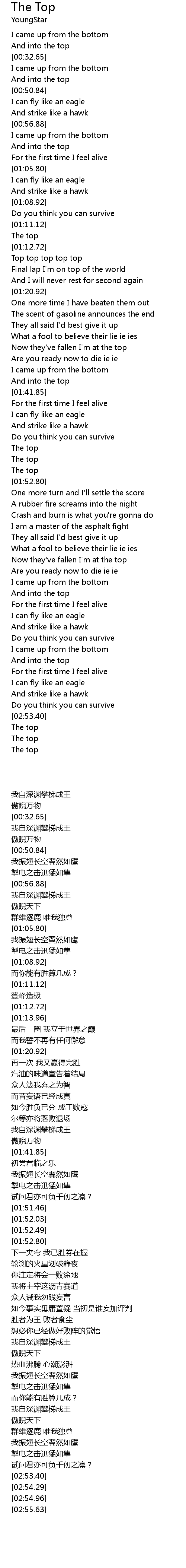 Final lap I'm on top of the world |