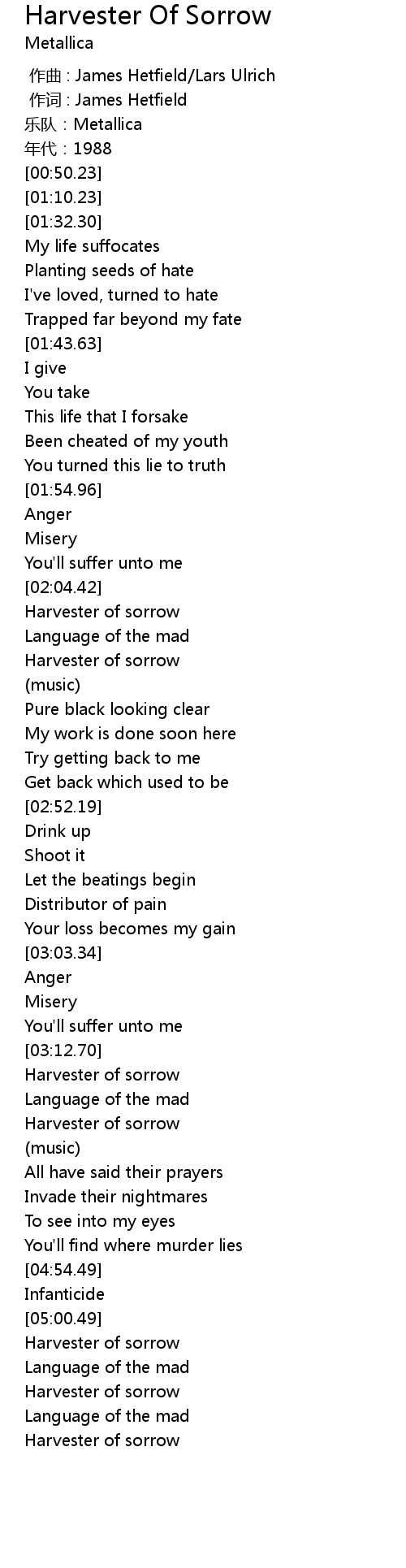 | [05:04.51] | Harvester of sorrow |