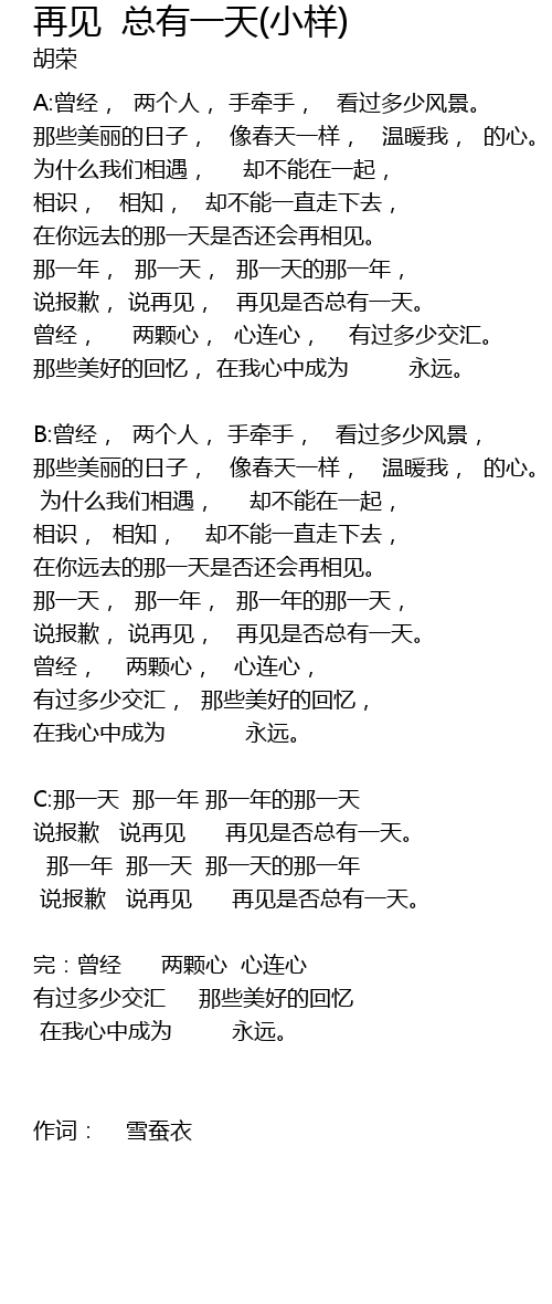 | 说报歉 说再见 再见是否总有一天。 | |