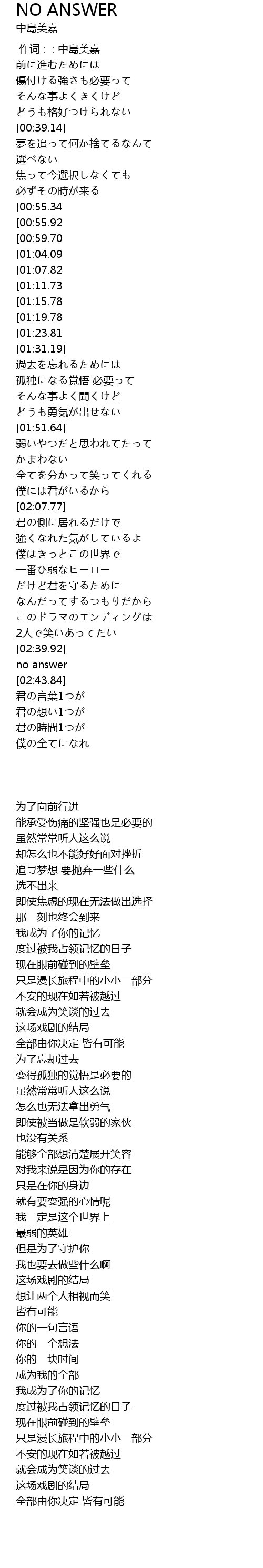 | [03:41.01][01:23.81] | 全部君が決められるよ no answer |