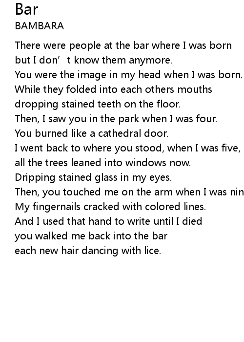 | There were people at the bar where I was born | |