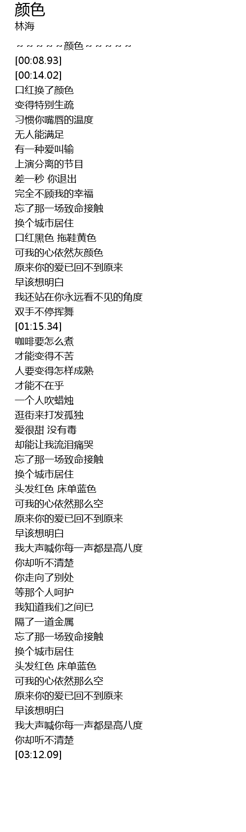| [00:02.03] | ~~~~~颜色~~~~~ |