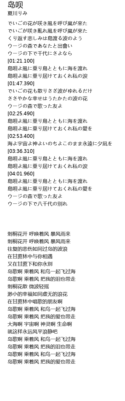 | [03:37.640] | 島唄よ風に乗り鳥とともに海を渡れ |