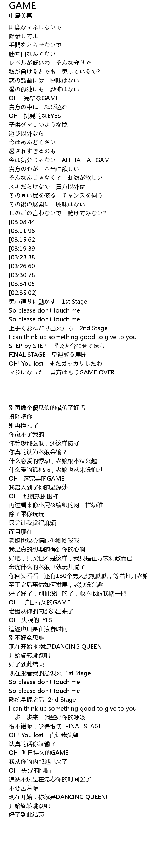 | [02:05.22][03:08.44] | OH zhōng GAME |