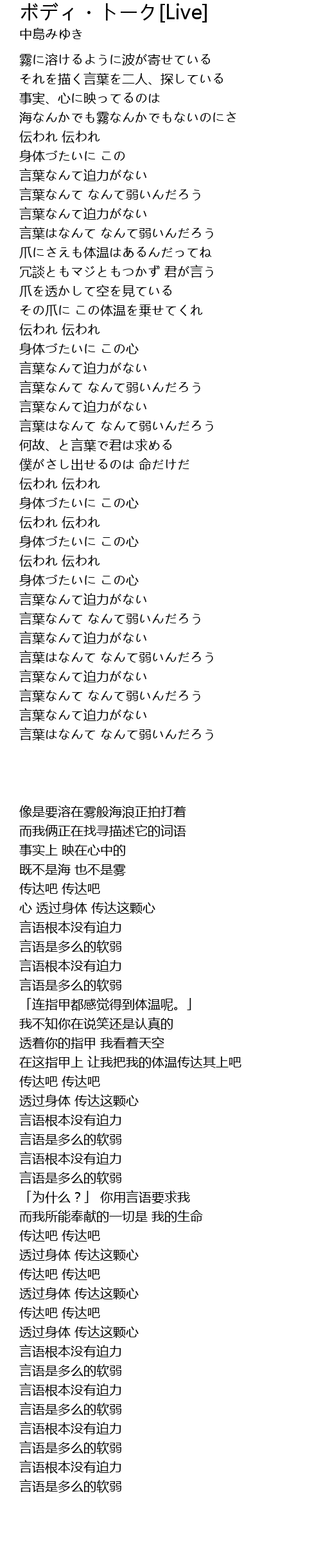 | [02:53.829] | 身体づたいに この心 |