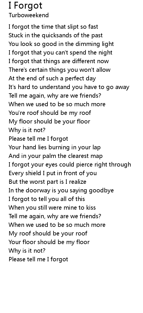 I Forgot Lyrics