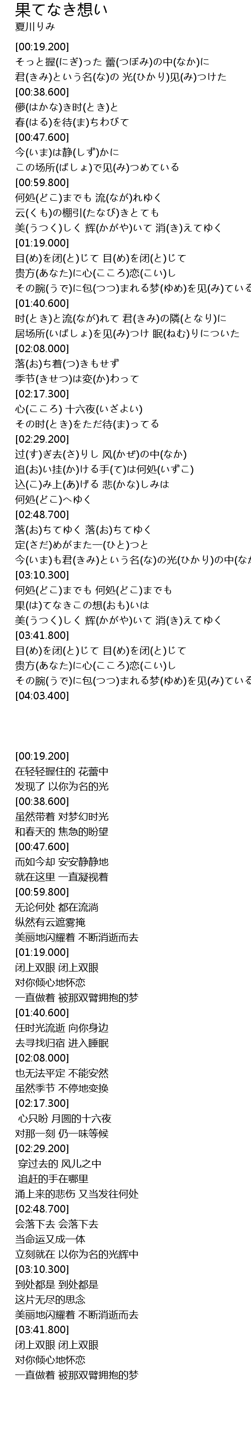 | [03:23.600] | 何処(どこ)までも 何処(どこ)までも |